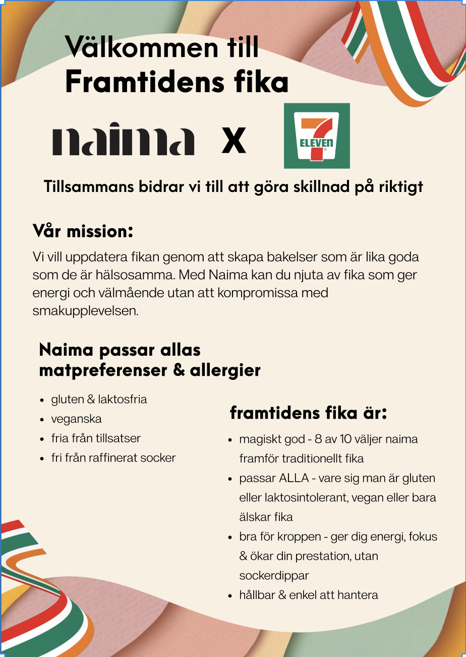 A major milestone for Naima was launching the naima bites at 7-Eleven. In connection with that, I created a information sheet for 7 eleven and marketing materials for Instagram and email.